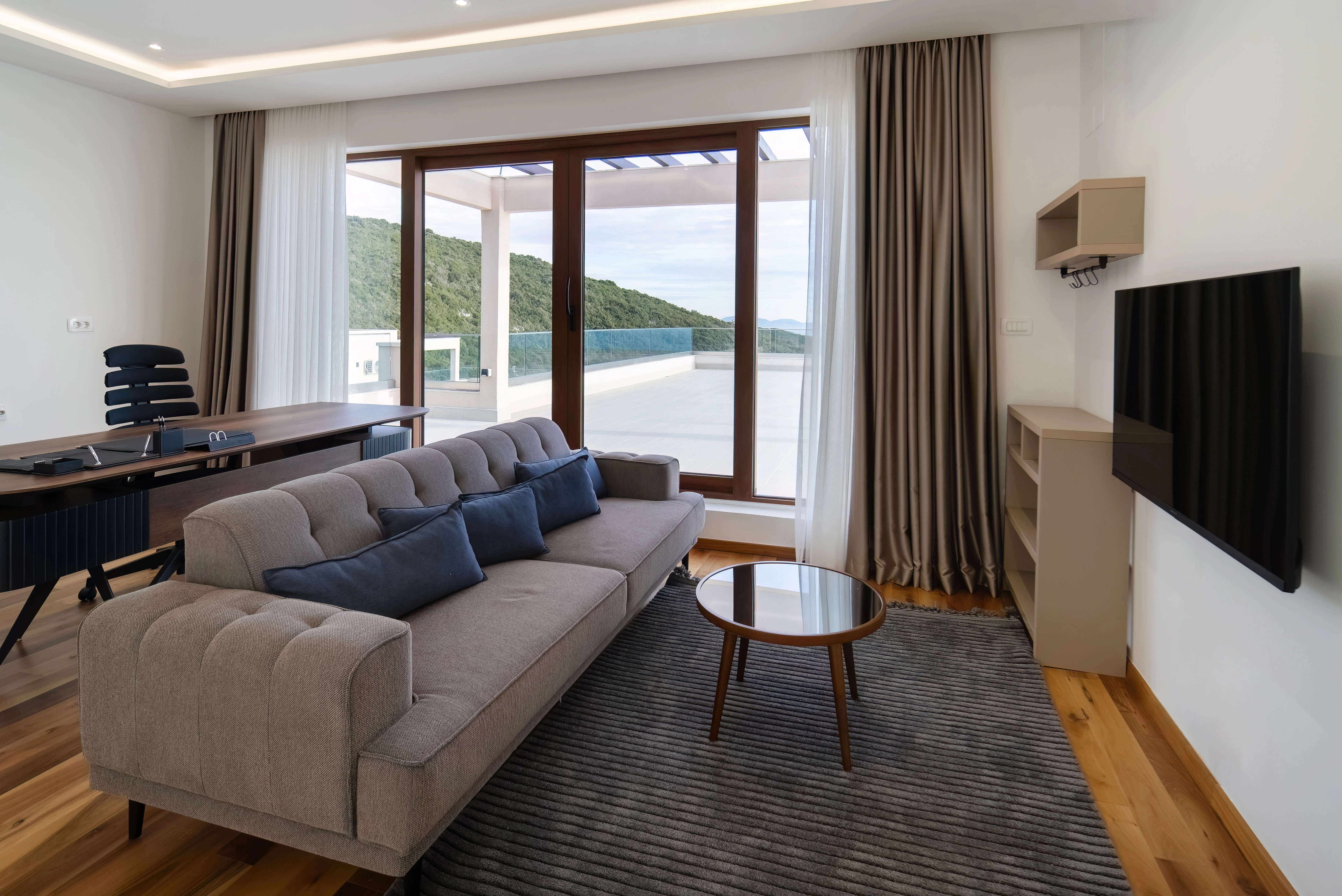 The Greek Collection Villa Epsilon is a luxurious five-bedroom retreat nestled in the serene locale of Krimovica, Montenegro. This villa seamlessly blends contemporary design with functional elegance, offering guests an unparalleled experience of comfort and style.