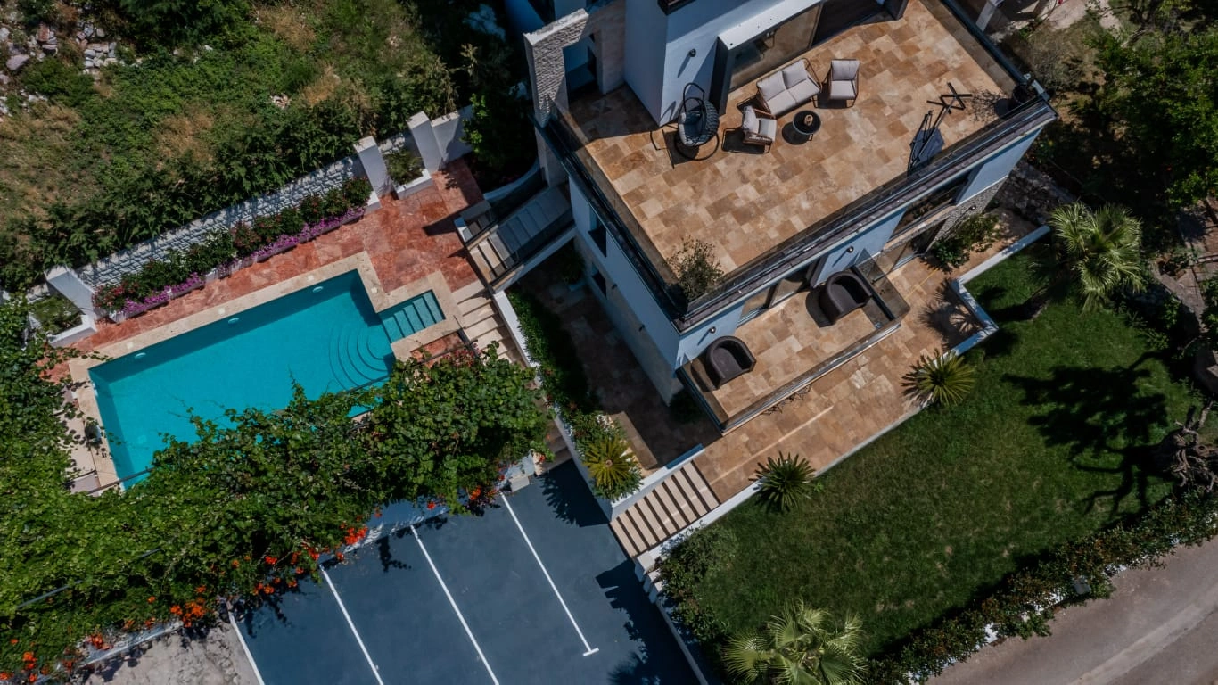 Welcome to Hilltop Haven, a luxurious villa perched above Budva, nestled in the tranquil and green surroundings of the Markovići neighborhood. This modern residence offers a perfect blend of elegant architecture, natural beauty, and thoughtfully designed interiors—ideal for those seeking peace, comfort, and style, just minutes away from the Adriatic coast.